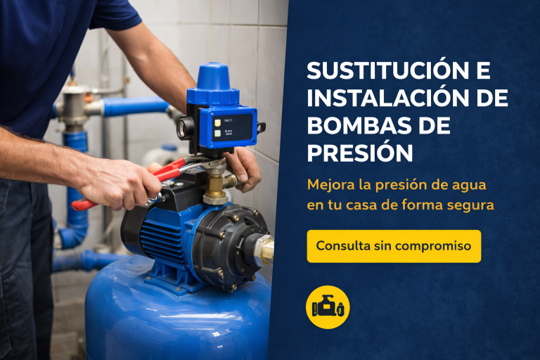 Instalamos y sustituimos bombas de presión para garantizar un caudal de agua constante y sin problemas en tu vivienda. Trabajamos con equipos de calidad para asegurar un rendimiento eficiente y duradero.