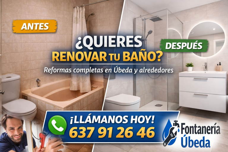 En Fontanería Úbeda realizamos reformas de baños en Úbeda y alrededores, ofreciendo un servicio completo, profesional y adaptado a cada cliente. Transformamos tu baño en un espacio moderno, funcional y cómodo, cuidando cada detalle desde el diseño hasta la ejecución final.